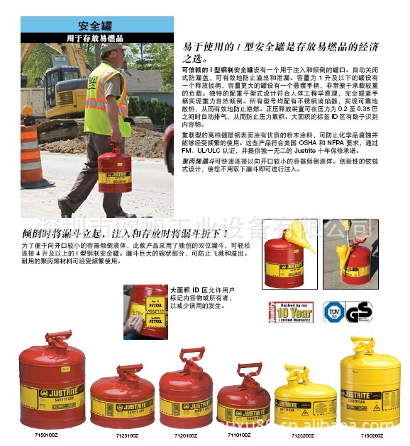 FM、UL/ULC 认证,并提供独一无二的 Justrite 十年保修承诺。