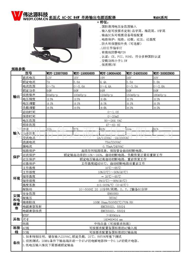 格书适应于12V7A 型号的适配器。