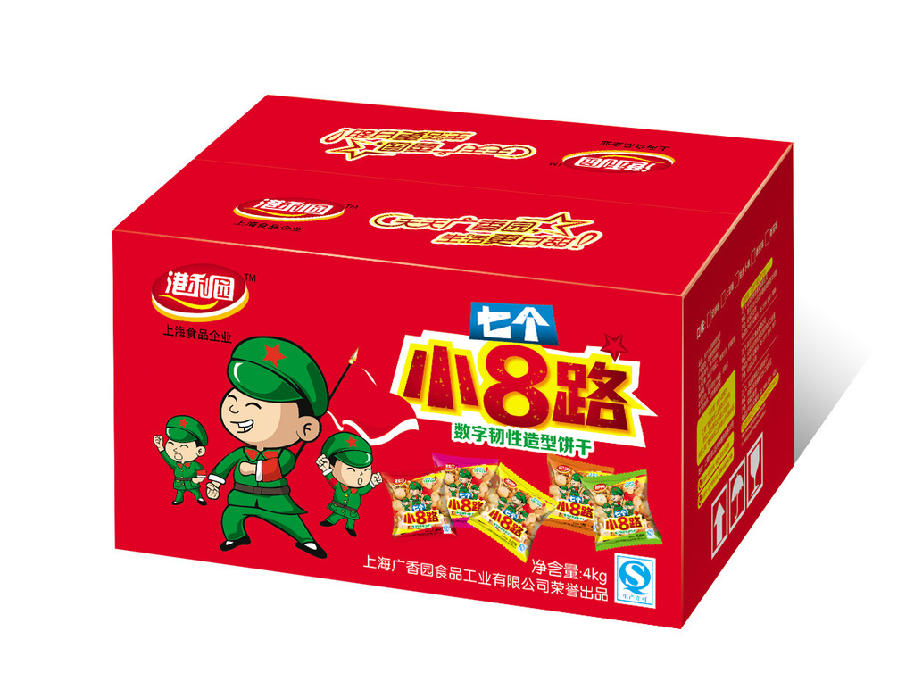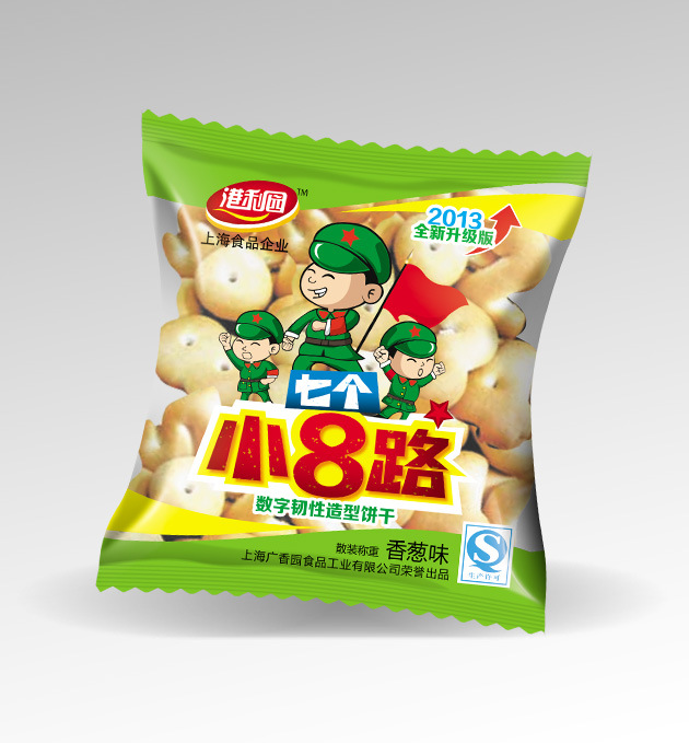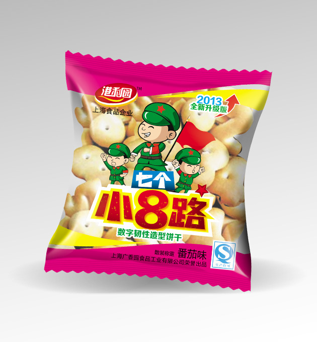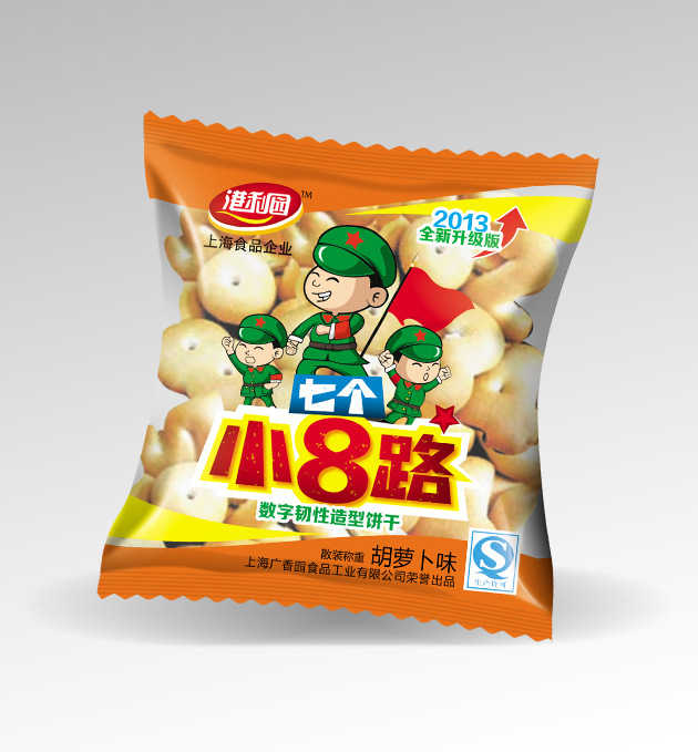 港利园推出最新数字饼干 "七个小8路" 有奶油味、土豆味、胡萝卜味、番茄味、香葱味共5个口味,每箱重5kg 62.5元/箱