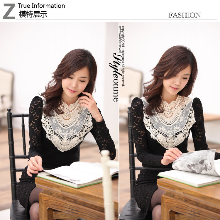 2012新款百搭高领勾花蕾丝拼接女式打底衫长袖批发W045