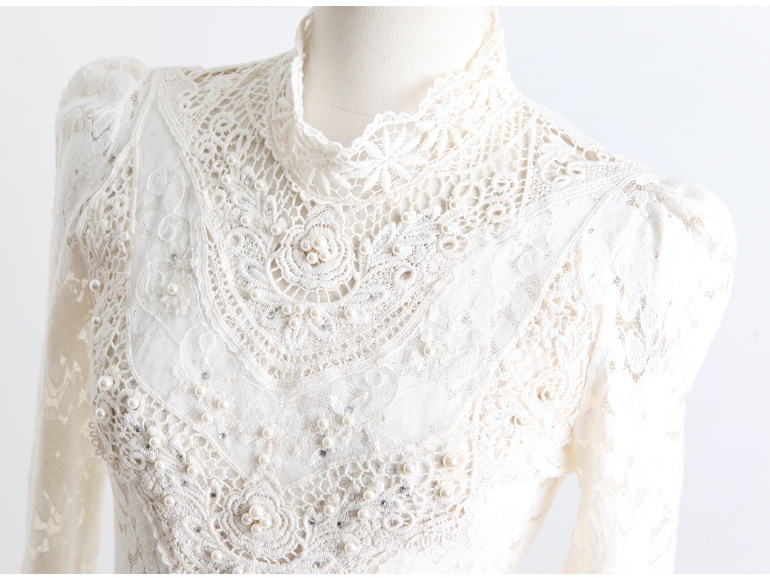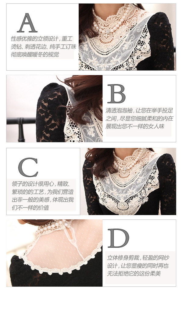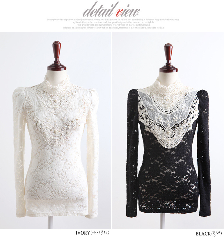 爆款 2012珍珠镶嵌高领勾花蕾丝修身百搭女式 打底衫长袖W084