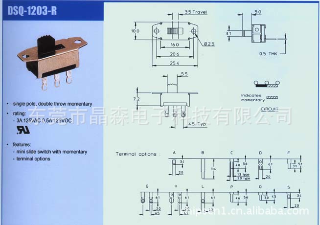 额定电压电流:6A 250V AC,10A 125V AC 等
