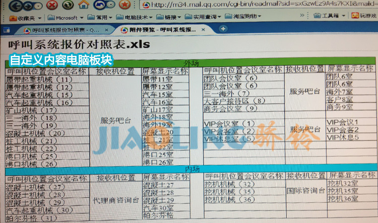 此款为大屏幕中文呼叫器主机,可为客户量身定制产品,您有需求,我公司都可为您量身定制,使用价值非常的高,特别是有些大型工厂的呼叫管理员上的欠缺,此款中文主机都可为您量身定制,中文的显示呼叫器方式更直观,在车间呼叫按下的同时主机会显示相关的号码与服务需求,主机展示并可语音报号,完全替代数字呼叫器的不足,应市场需求所需公司推出大量新款无线呼叫器、LED中文无线智能叫号器、有线叫号器、有线呼叫对讲系统、自助取餐器等高端产品。适用于餐厅、茶楼、咖啡厅、酒楼包厢、中西自助餐厅、棋牌室、休闲会所、网吧、工厂、银行、移动公司,证劵公司,医疗养老机构、法院、派出所、监狱、社区、办公等机关企事业单位。由于市场发展需要公司现面向全国各地招商代理、经销等有意向之士。