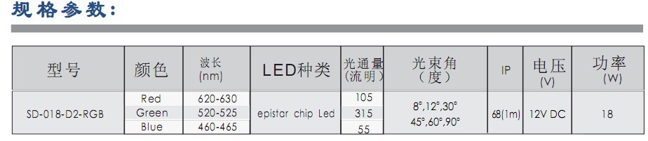 -LED种类和数量:3颗红色,3颗绿色和3颗蓝色晶元芯片LED