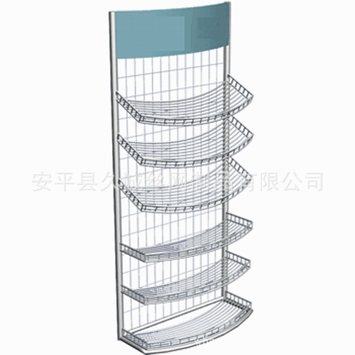 超市货架材质:以不锈钢丝网为主,采了电解抛光技术进行表面处理,表面光亮如镜。