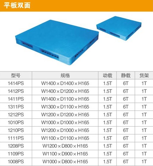 平板双面塑料托盘柯瑞德厂家提供。塑料托盘使用叉车一次所能允许举起的最大重量;静载:在码垛中,最下面的托盘所能承受的最大重量;架空荷载:将托盘包装的货物放在货架上时允许的最大重量。荷载量的不同与货架、温度及仓储期有密切关系; 卫生:不腐烂,不吸收水分,易冲洗,易晾干,没有虫和细菌; 安全:重量轻,没有钉子,突起物; 使用寿命长,可回收再利用。