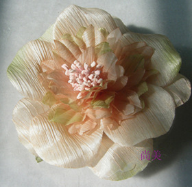 此款定型花采用雪纺面料精致而成,挑染一点绿,非常时尚经典。