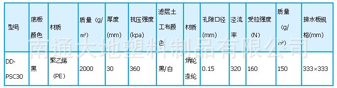 DD-PSC30排水板是用聚乙烯(PE)原料注塑而成,抗压强度高,不容易产生变形。是集排水、蓄水功能于一体的新型排水材料,并具有质轻、耐高负荷、排水、蓄水、隔热、运输方便、易施工等优点。 用 途:广泛应用于屋顶绿化、地下车库顶板绿化、高尔夫球场、草坪球场排水,并可大量蓄水于支柱内。每块之间可以相互扣接,在铺好的排水板上铺上一层土工布,从而形成一个组合排水板。