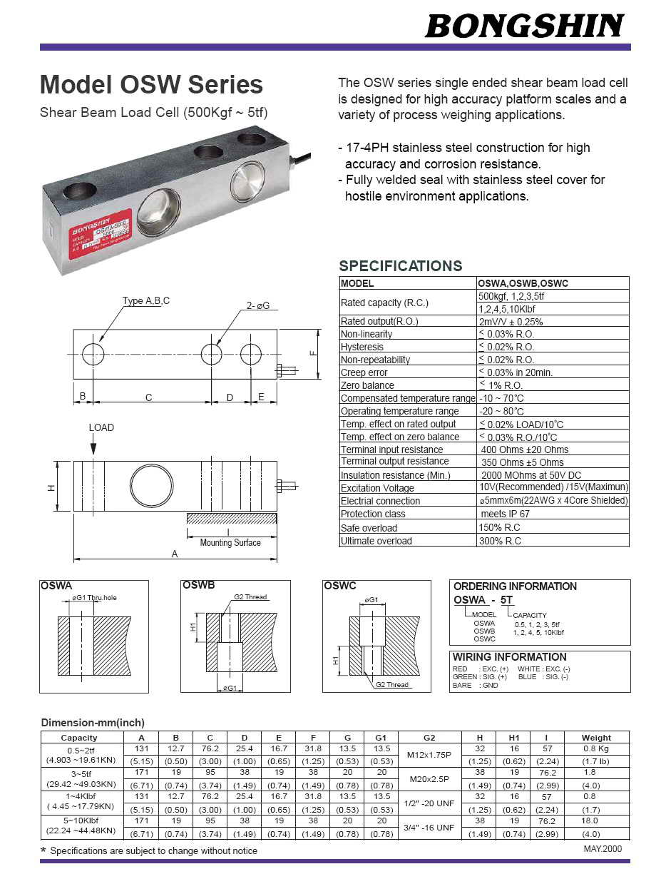 OSW 悬臂梁拉式传感器 韩国Bongshin称重传感器