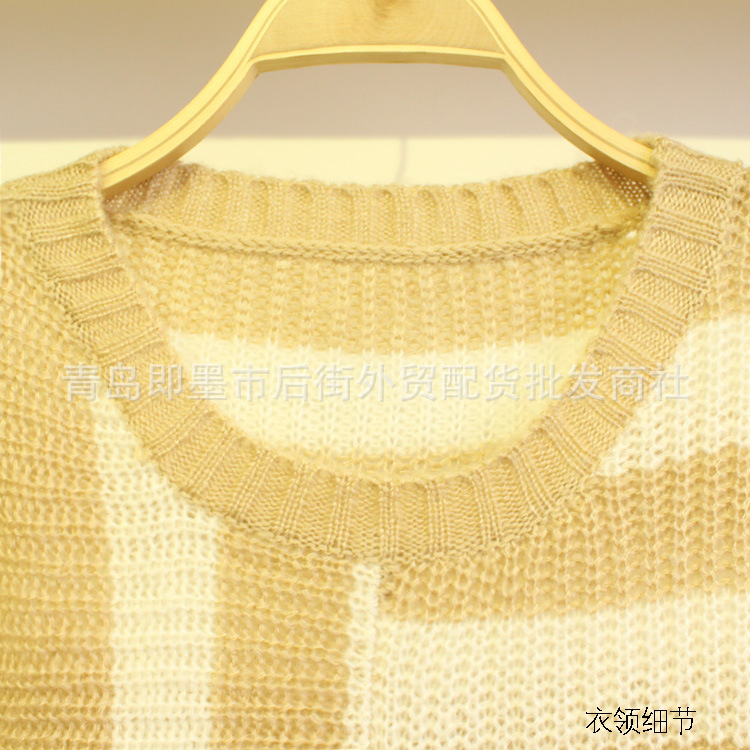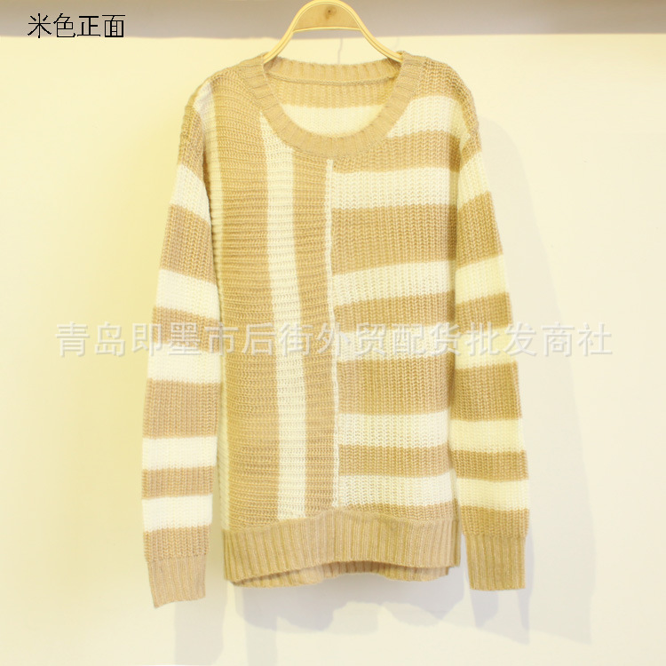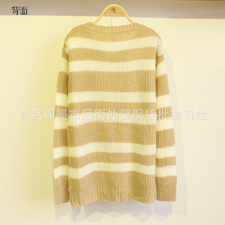 | 2013新款外贸原单女式毛衣 LAZY大牌 日单 杂志款宽条针织衫 7634 25.0