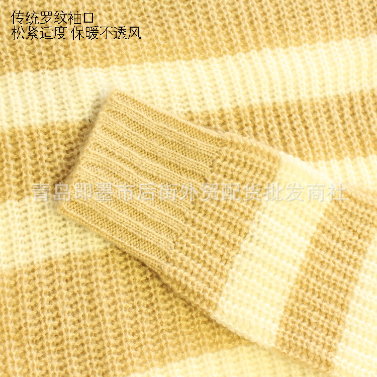 2013外贸新款毛衣批发 时尚韩版条纹学院风圆领女式毛衣 7510
