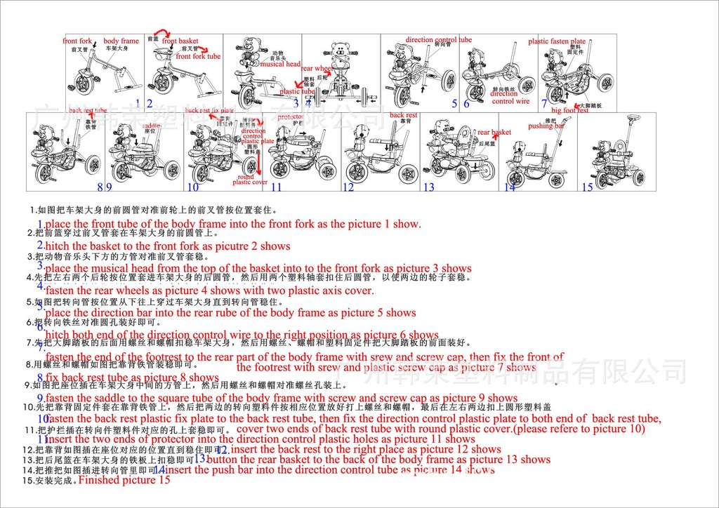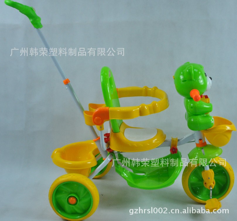 【优点】本产品使用无毒全新PP原料生产,拆装轻松方便,年轻妈咪也可轻松快捷进行拆装。此车有6-12首音乐,同时配有LED灯光;车后有购物篮,是一款多功能高级儿童三轮车,很受欧盟、南美、中东、东南亚等小朋友的青睐。
