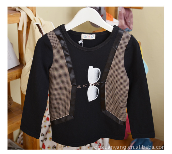 2012秋季新款 男童长袖T儿童T恤宝宝打底衫 假背带装饰
