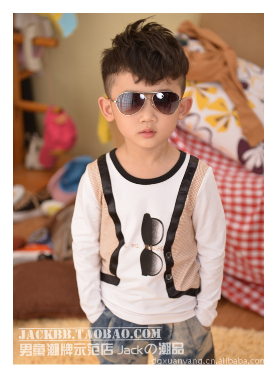 2012童装男童儿童T恤宝宝纯棉长袖T恤男童印墨镜长袖T恤