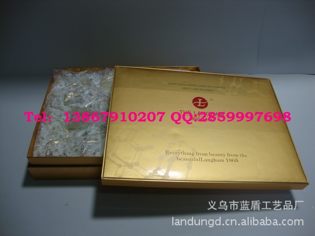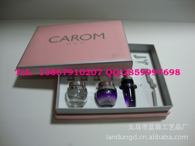 u本款化妆品包装盒已标的是临时价格,具体价格为议价,根据款式及材质工艺的具体要求及订货数量 而定,因为用料厚度、印刷色数、数量都有不同,再加上原材料的价格不定,所以我们的商品 不以一口价为准<<量大从优>>请来电细谈!; u上图所展示的化妆品包装盒是我厂已生产过的产品类型,具体款式可按您的要求设计订做 u我厂店铺所展示的产品没有现货,需订做; u可以根据客户提供的样品或设计稿,把厂标、公司标志制作在产品的任何部位; u化妆品盒包装按您的要求办理。 |