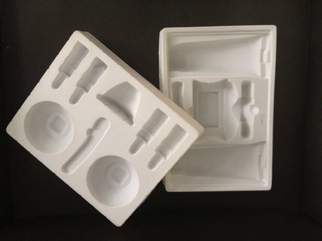 【工艺优势】我厂的吸塑模具全部采用带水冷系统和底盘的铝模,与其它大多数吸塑公司采用的电镀铜模相比,优点明显:1.吸塑模具经久耐用,损耗率低;2.自带底盘解决了模具拼版问题,可以根据产品大小自由拼版模具,自由选购原材料的宽度,从而大大节省成本;3.吸塑铝模上自带冷水系统,吸塑机上可不采用喷雾冷却装置,从而解决了吸塑产品上带水迹的问题,而且吸塑成型速度快;4.吸塑成型时采用二次加热,使片材受热均匀,成品质量稳定。吸塑成品的裁断模节约成本,我厂生产出的泡壳被广州著名企业誉为免检产品。