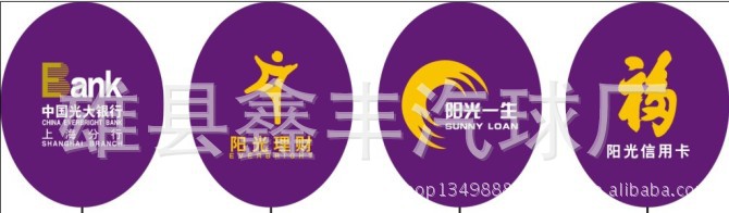 广告气球:气球可印刷任意广告内容,广告促销气球作为一种新型的广告载体,越来越受到企业、商家的亲睐,在气球表面上印上企业、商家的标志图案、宣传用语、庆贺文字等进行广告宣传,以扩大企业的知名度与产品的销路。其价格低廉、亲和力强,广告效果佳。