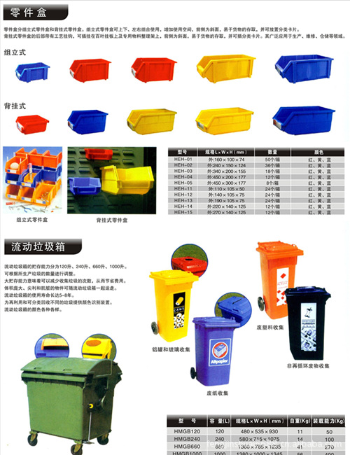 零件盒分组立式零件盒和背挂式零件盒。组立式零件盒可上下、左右组合使用,增加使用空间,前侧为斜面,易于货物的存取,并可放置分类卡片。背挂式零件盒的后部带有工艺挂钩,可插挂在百叶挂板上及专用物料整理架上,前侧为斜面,易于货物的存取,并可插分类卡片。其广泛应用于生产、维修、仓储等领域。