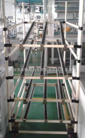 先进先出货架,线棒流利架,是由线棒精益管,线棒配件及滑轨等连接件组装构成的一种可拆卸的货架,也叫线棒流利架或滑移式货架。