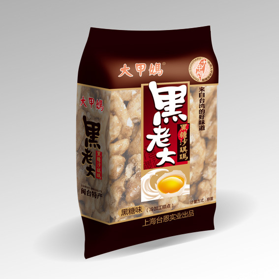 2013年台恩实业推广的来自台湾的文化品牌“大甲妈”, 最新推出黑糖沙琪玛“黑老大”系列,共四个口味,有黑糖味、瓜子仁味、黑芝麻味、葡萄干味,每箱重2.5kg