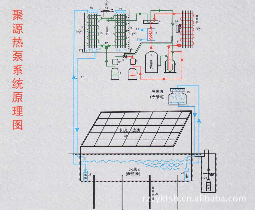 最大优点:正常天气是以风源热泵空调方式运行,同时利用水的比热,将空气能,太阳能,地热的效率随天气变化而变化,又弥补了地源热泵空调只能依靠地源、水源、市场难以开发的局面。