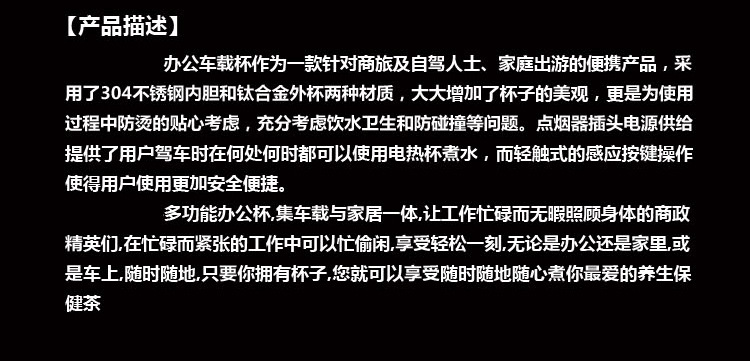 本公司生产的车载电热杯,遵循安全、健康卫生、便利的原则,