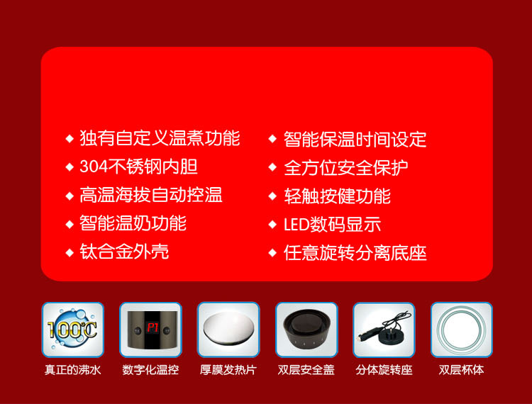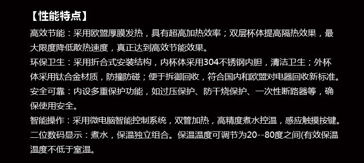 1.智能控制,水开自动断电,保证100%开水,指示灯显示,使用方便;