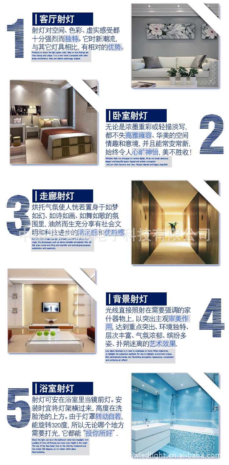 厂家直销超强散热高亮度服装店射灯 3W/5W/7W LED筒灯 LED天花灯