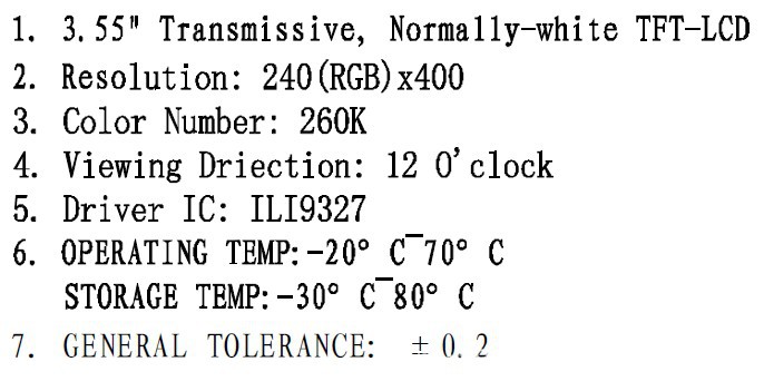 3.55"TFT液晶显示屏,详细资料如下(可来电索规格书和驱动程序,价格面议):