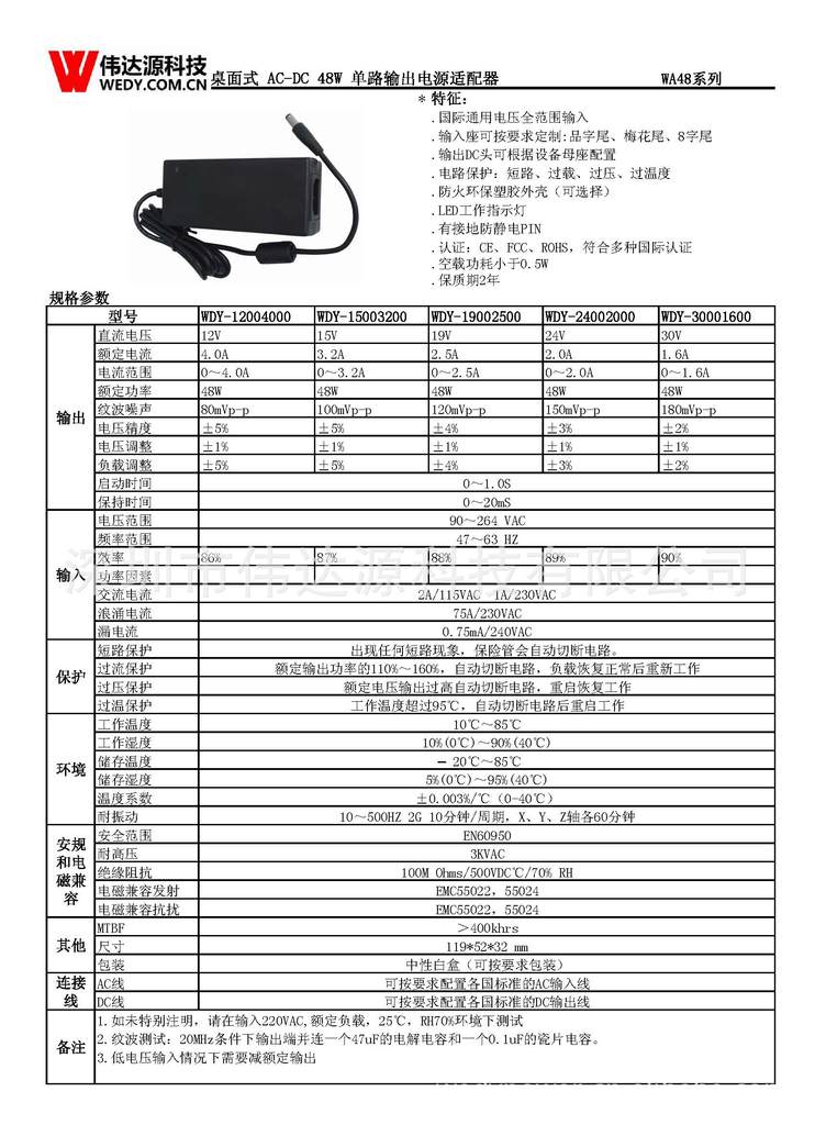 4.2过流保护(Over current Protection):过流故障排除后,电源将自动恢复正常工作。