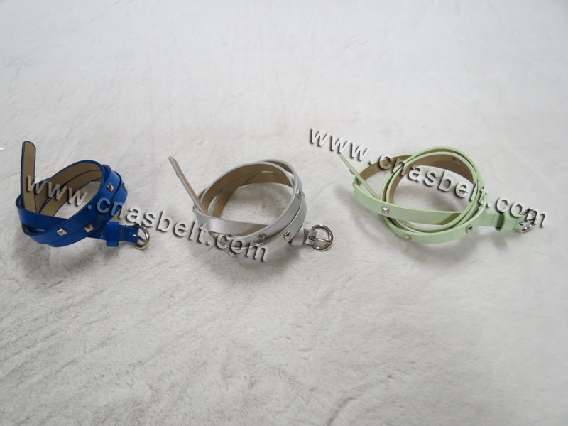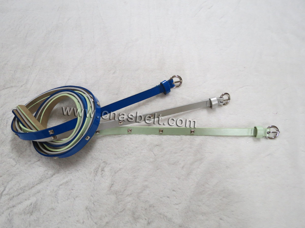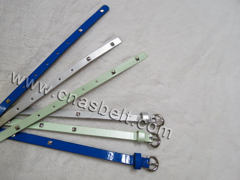 厂家直销,订做镜面铆钉PU窄腰带/皮带 1.3cm