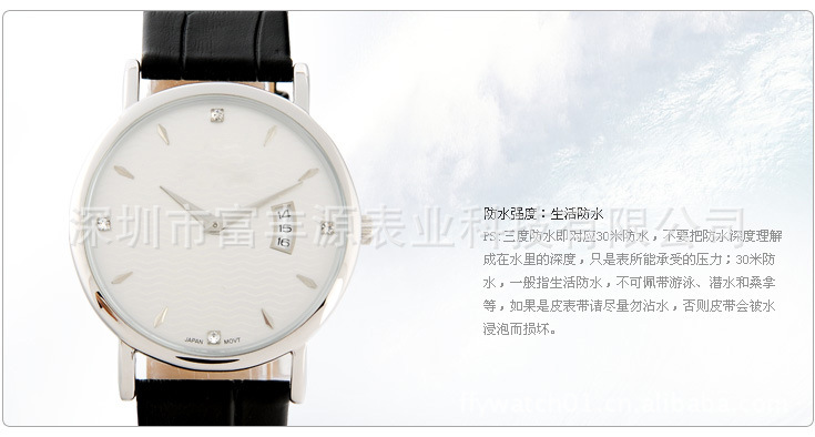 本公司生产的各类手表,以优良的品质、适中的价格以及准确的交货期赢得了国内客户及欧美、中东、东南亚等世界各地客商的信赖和支持。我们将一如继往的秉承“质优价美、服务完善、互利双赢”的企业宗旨,携手海内外客户,共创辉煌!
