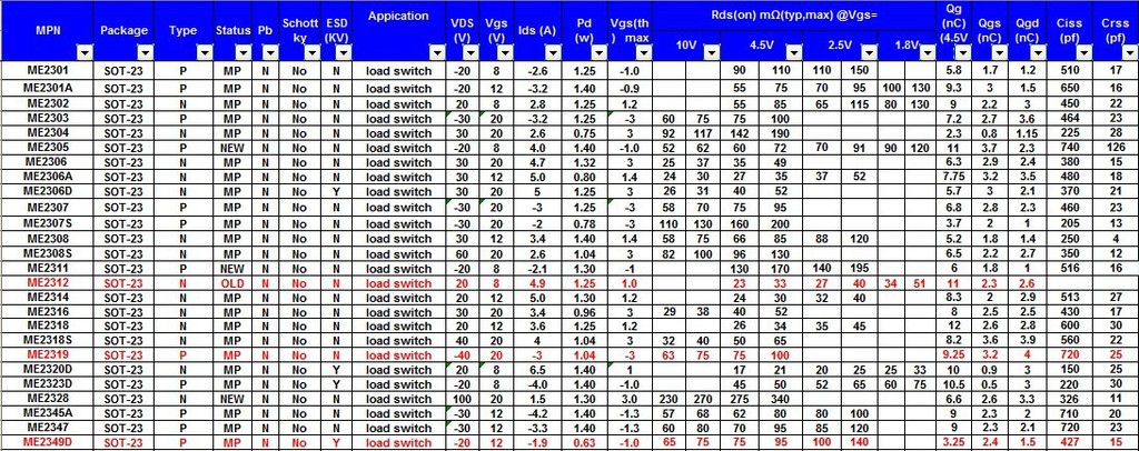 SOT-23:ME2301,ME2302,ME2303,ME2306,ME2307,ME2308,ME2312,ME2314,ME2316,ME2318,