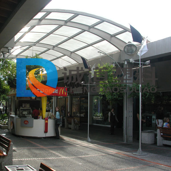 2、产品采用德国拜耳最新PC原料生产,各项指标经国家化学建筑材料测试中心检测均符合行业标准,具备耐候性好、抗冲击、透光率高、可塑性强的特性,具有隔热、隔音、质轻、阻燃、防紫外线等特点,广泛应用于公用、民用建筑的采光天棚、遮阳(雨)天棚、隔音屏障、各类温室、路牌、灯箱广告、电话亭、候车(机)亭、家居阳台等,是目前世界上最理想的光棚材料,备受现代建筑装饰行业广泛推崇和青睐。