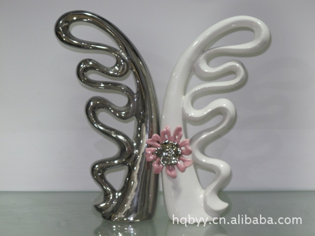 陶瓷配不锈钢工艺品 镶钻 镶水晶 花瓶 家居摆饰品