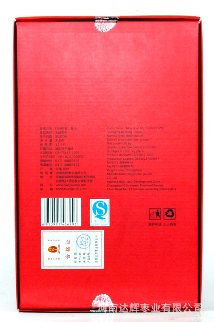 河南达辉枣业有限公司是一家从事枣制品研发、生产、销售的股份公司,位于河南省郑州市高新技术开发区国家大学科技园内,公司创立于2010年2月8日,主要产品有“好优美”枣片系列、水晶枣干系列、饴糖枣糕系列、红枣咖啡系列、保健枣粉系列(专为老人和女士设计)、多维枣糖系列、健康红系列、轩辕黄帝御枣系列、博士情系列、野酸枣系列、金丝小枣系列、枣白金系列等。公司系列产品已经在省内各大超市销售(如沃尔玛超市,大商新玛特超市等),外部已远销香港和澳门,出口东南亚及日本和韩国。