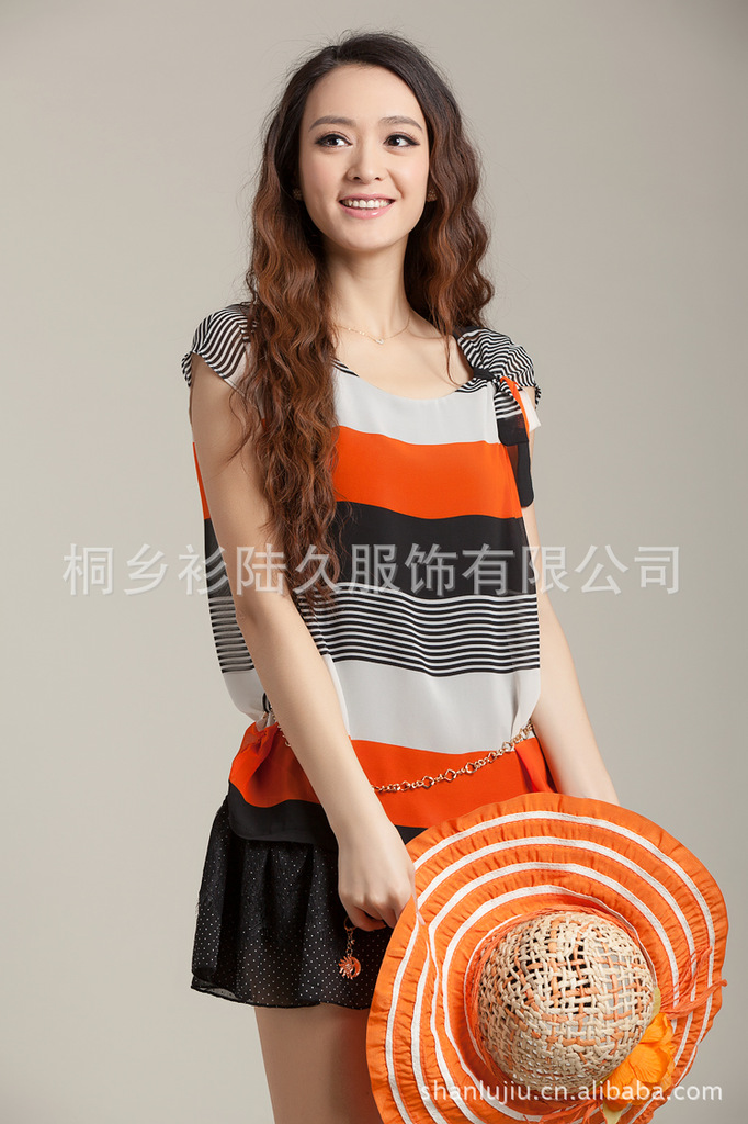 2012夏季新款 宽松舒适 条纹雪纺短袖连衣裙 女 韩版8335