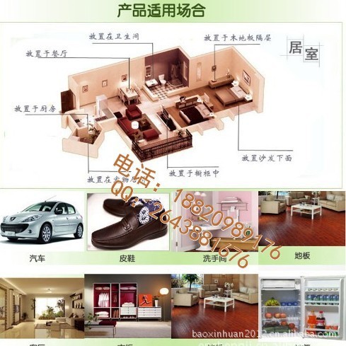 重量为1000g/包或2000g/包,放置于柜子顶部或者空间较大区域。