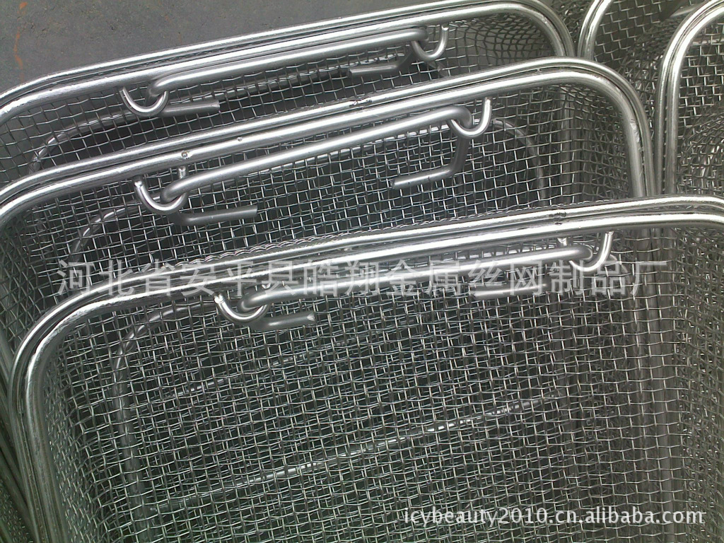 不锈钢网筐。不锈钢清洗筐。不锈钢消毒筐。采用SUS304,316,316L不锈钢材质。制作而成。广泛用于家庭、工厂、学校、食堂、研究所。美观大方、经久耐用、耐酸耐碱耐高温等特点,医院抗等离子不锈钢医疗器械篮。