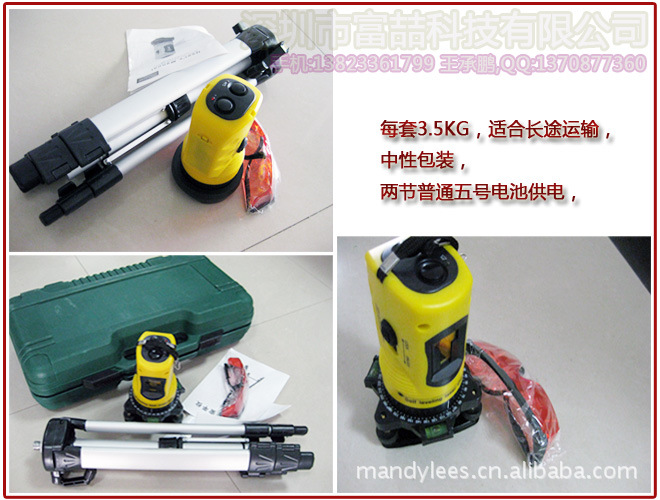 6.激光器上带刻度,和2个水平精准水沟,不连接三脚架也可精确使用。