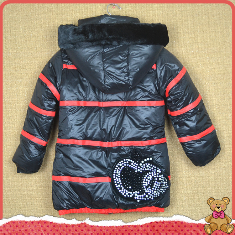 供应2012女童装 新款休闲黑色中长款棉衣 1717
