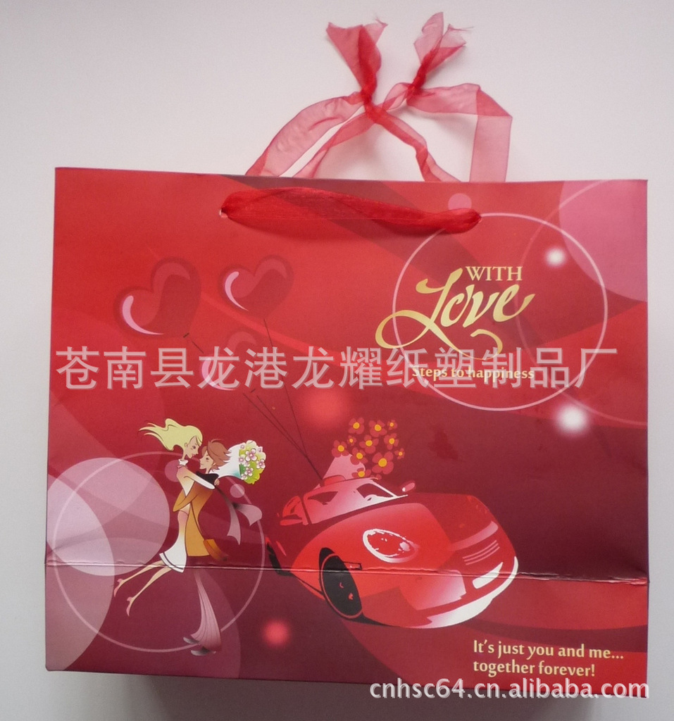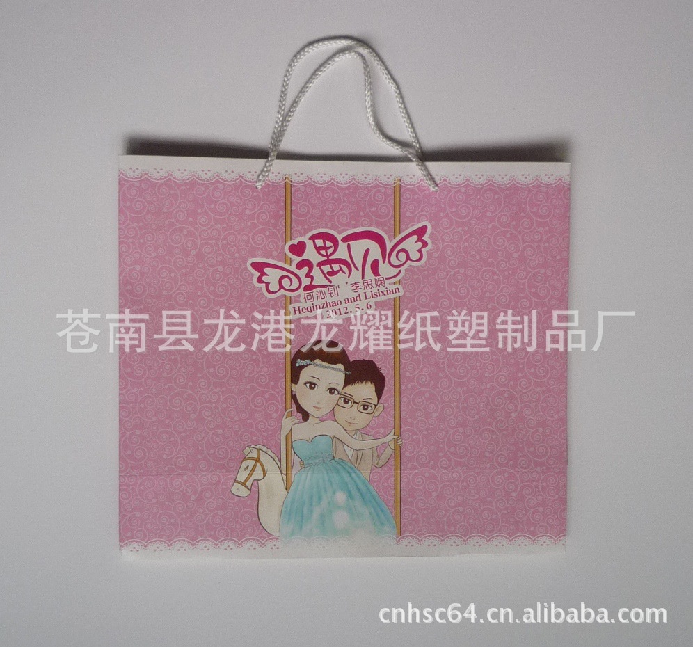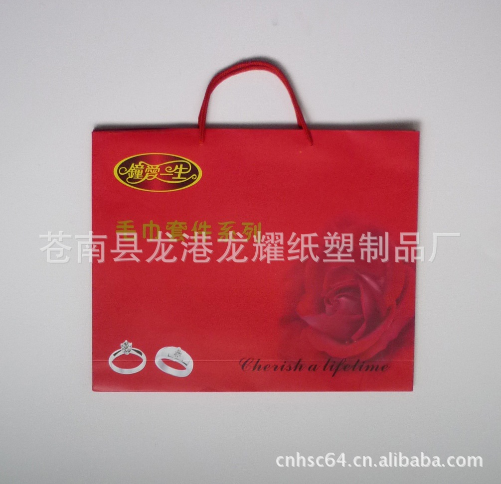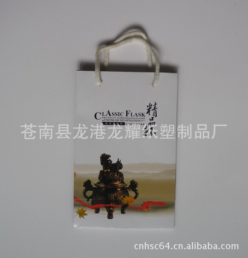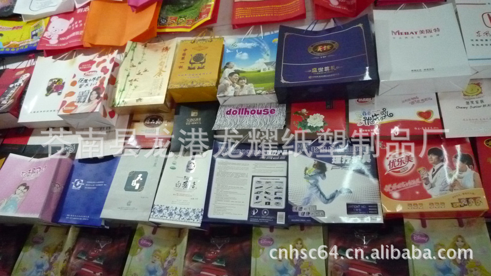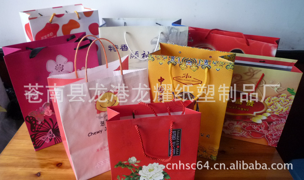 2、生产手提袋工艺:印刷、UV印刷、复膜、上光、烫金、压痕、压纹、糊袋子、穿手提绳(有棉绳、纸绳、丝绳、宽扁绳等)。
