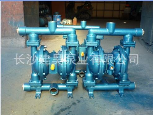 气动隔膜泵是一种新型输送机械,采用压缩空气为动力源,对于各种腐蚀性 液体,带颗粒的液 体,高粘度、易挥发、易燃、剧毒的液体,均能予以抽光吸尽,目前已形成化生产,产 品质量深受好评 。这种泵的主要特点是不需灌引水,既能抽送流动的液体,又能输送一些是易流动的介质 ,吸程高、扬 程可调(0-50米)气源压力只须大于1kg/cm2即能工作,绝对防火防爆,具有潜水泵、自吸 泵、杂质泵、 屏蔽泵、泥浆泵的一切功能和输送机械的许多特点。