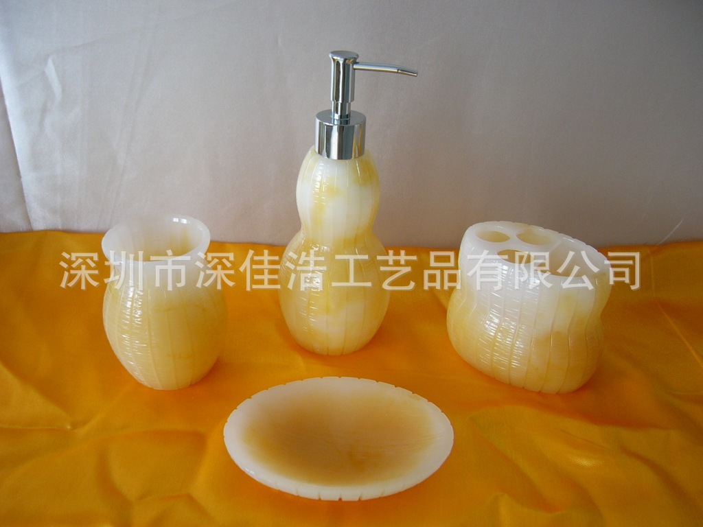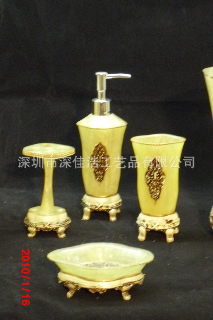 新颖民族风树脂卫浴四件套 黄珍珠卫浴用品套件 婚庆礼品 结婚卫浴
