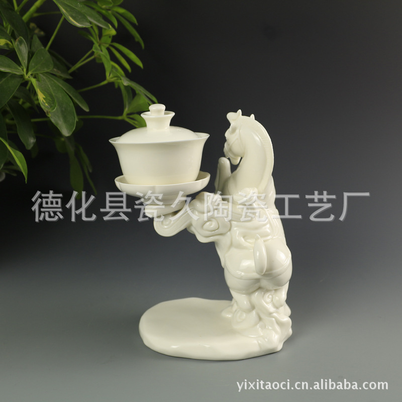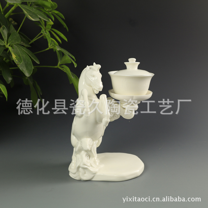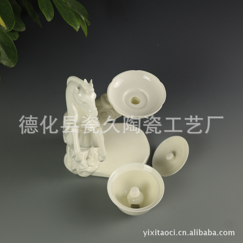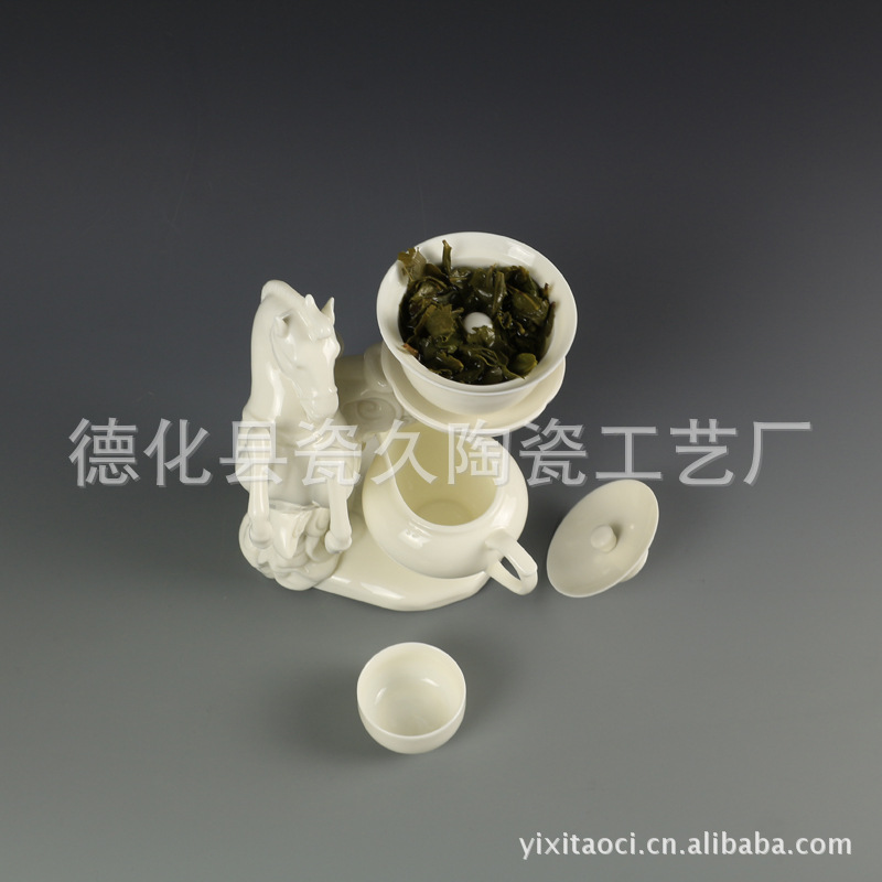 【商品尺寸】公道杯:长12.2CM*宽8.2CM*高6.5CM 盖碗:直径:8.2CM*盖碗高5.1CM(不含盖高) 杯:直径5.1*高3CM 马:长15.5CM*宽14CM*高20CM(含盖碗总高21CM)