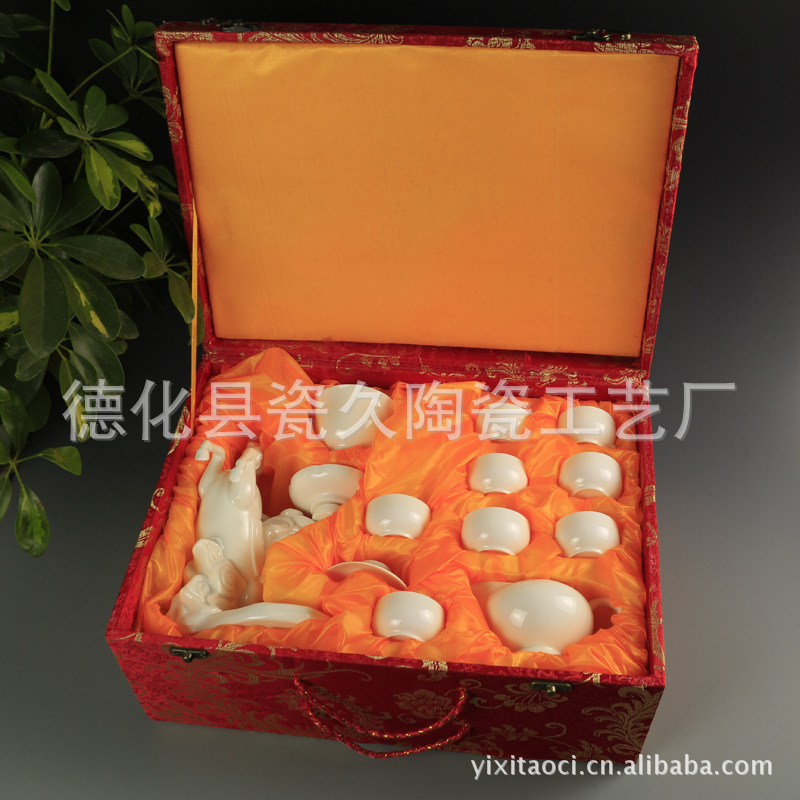 【商品名称】高档白瓷马到成功半自动功夫茶具锦盒装 商务茶具LOGO订制