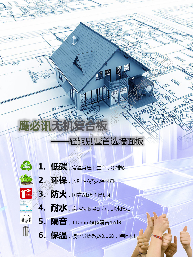 鹰必讯无机复合板 轻钢别墅 出口贸易 优选墙面板材