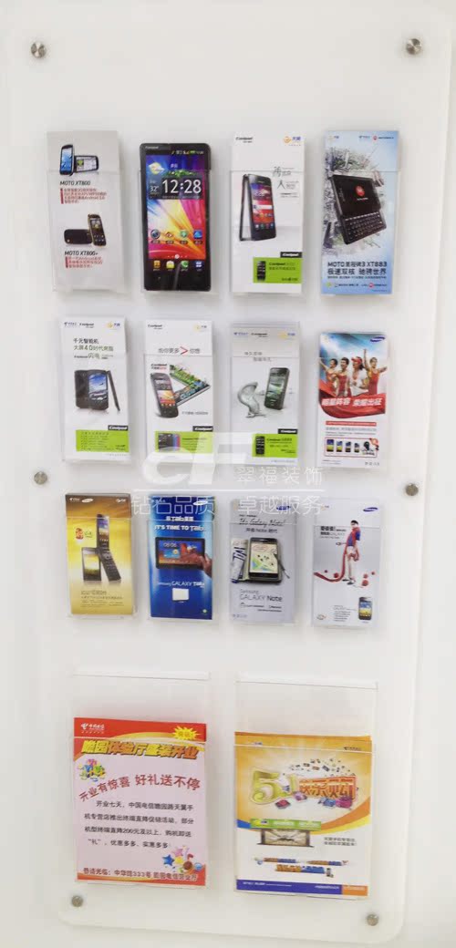 | 挂墙资料架B | L600*57*H1450 | 组 | 根据实际需求 | 进口纯白色进口有机资料架,镜钢广告钉固定。 |