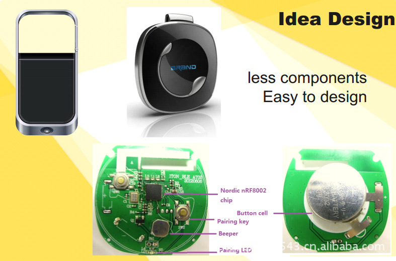 主要功能:丢失报警、双向寻找、定位记载丢失地点;电池可用1年以上,可设置10米内任何距离。适合健忘的人,或者那些丢三落四的人的防丢器。出门老忘记带手机,这款产品与钥匙放在一起的话,就可以避免出门忘带手机了,或外出吃饭、办事也不会忘带手机了