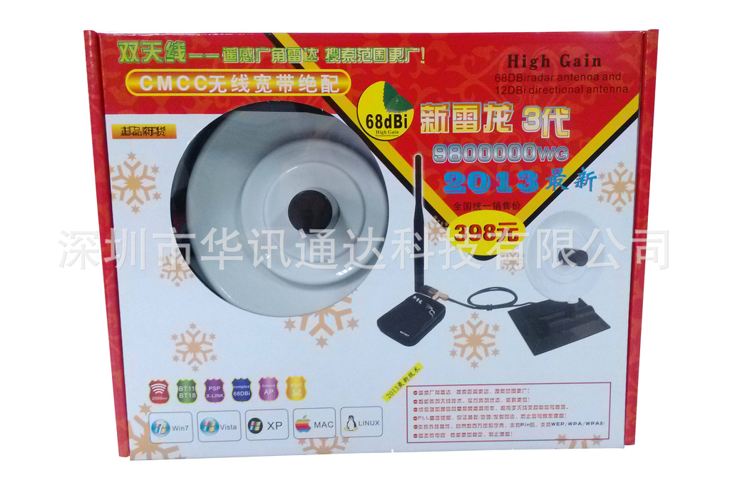 工厂大量批发优势货源/质量保证,价格优势,iL.0,周p55ia论5B光 欢迎订购加盟代理,价格更优惠。 1.大功率无线网卡 2.彩色包装,网卡驱动 3.USB数据线/ 4.10DB定向天线 5.光盘一张+辅导资料 网卡参数 标准 IEEE 802.11b/g 接口 USB 2.0/1.1 频率 2.412GHZ ~2.484GHZ unlicensed ISM band 主芯片 RTL8187L 接收范围 可视距离5600米(理论值),实际使用需根据周围环境而定,一般在100-1500米之间. 调变 IEEE 802.11b:DBPSK/DQPSK/CCK , IEEE 802.11g:BPSK,QPSK,16QAM,64QAM 传输率 IEEE 802.11b:1,2,5,5 ,11Mbps , IEEE 802.11g:6,9,12,18,24,36,54Mbps 安全性 WEP (64/128/256bit),WPA,WPA-PSK,WPA2 TKIP/AES , WPA2-PSK 天线 RP-SMA 5DBI 操作系统 Windows 98SE,Me,2000,XP, Vista ,MAC,Linux 传输功率 27dBm ± 1dBm 接收敏感度 Operating at 11Mbps:<-82dBm@8%FER, 54Mbps:<-70dBm@8%FER 尺寸 8.5cm*5.8cm*1.8cm 重量 58克 温度 - 10 ~ 55 Celsius 湿度 10 ~90% (non-condensing)mBA0网B~01l,接7VM 认证 FCC,CE |